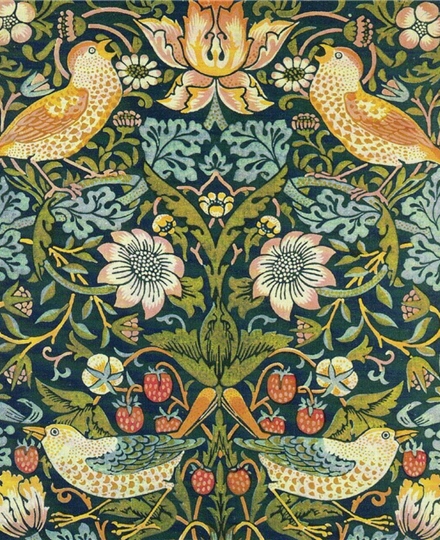 William Morris是19世纪英国最有影响力的设计师,创作许多以花园花草为主题的绘画,是英国美术与工艺运动的领导人。